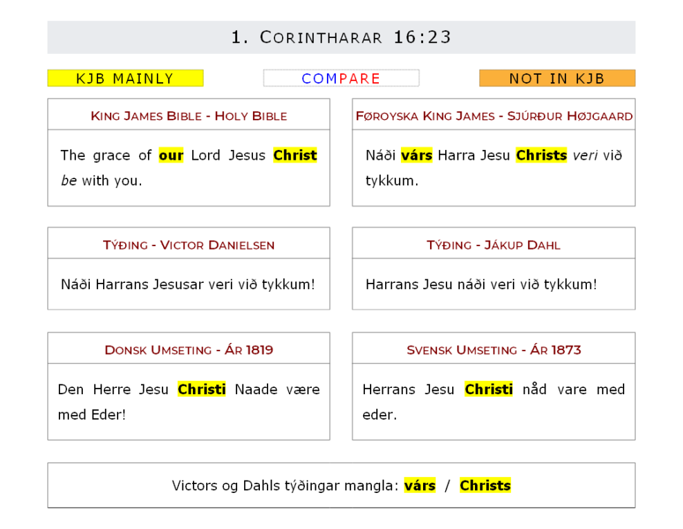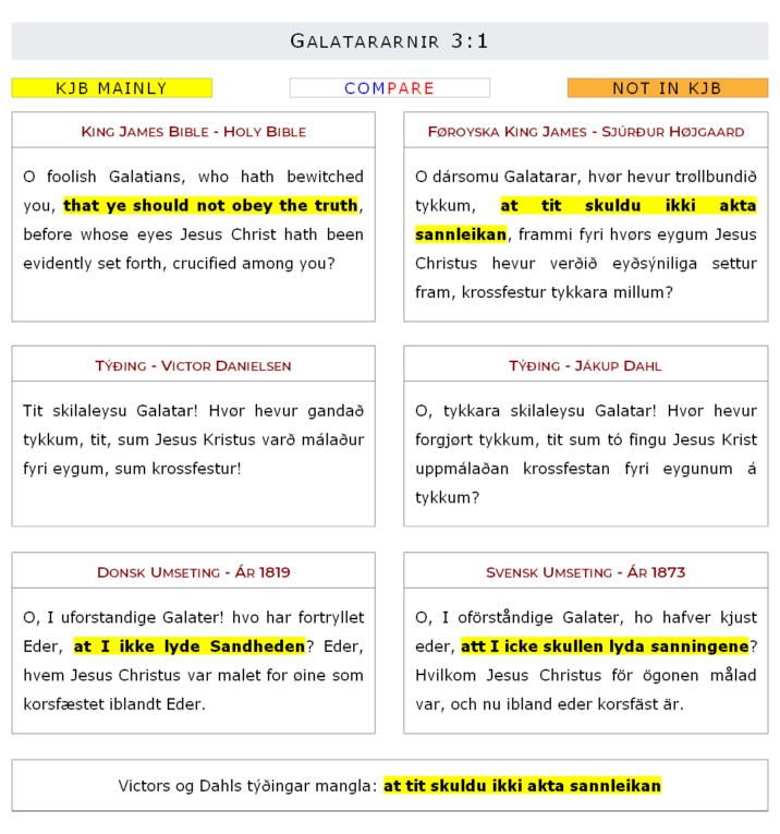 Victors og Dahls týðingar mangla: at tit skuldu ikki akta sannleikan