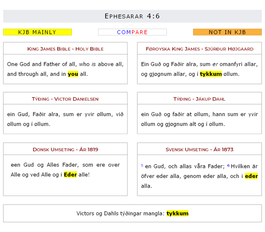 JD ein Guð og faðir at øllum, hann sum er yvir øllum og gjøgnum alt og í øllum.