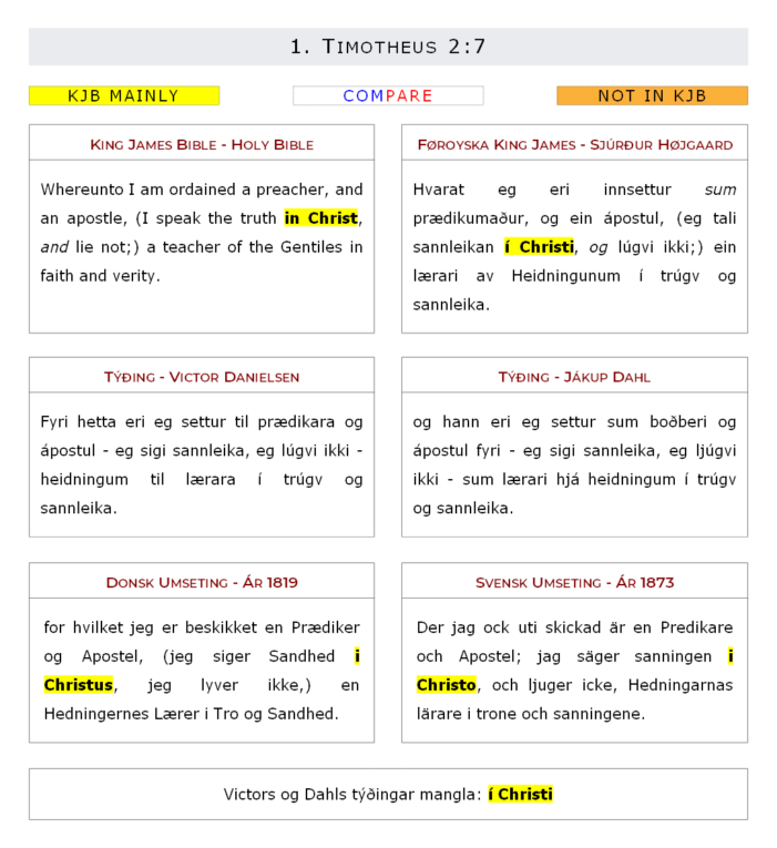 JD og hann eri eg settur sum boðberi og ápostul fyri – eg sigi sannleika, eg ljúgvi ikki – sum lærari hjá heidningum í trúgv og sannleika.