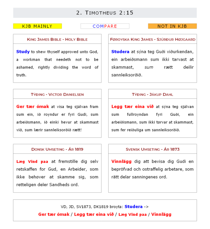 VD Ger tær ómak at vísa teg sjálvan fram sum ein, ið royndur er fyri Gudi, sum arbeiðsmann, ið einki hevur at skammast við, sum lærir sannleiksorðið rætt!