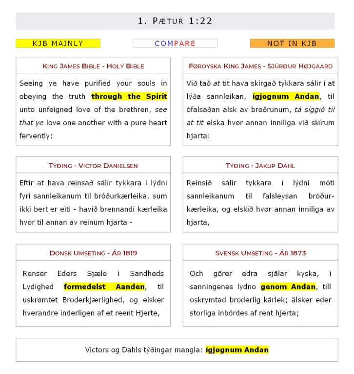 Victors og Dahls týðingar mangla: ígjøgnum Andan