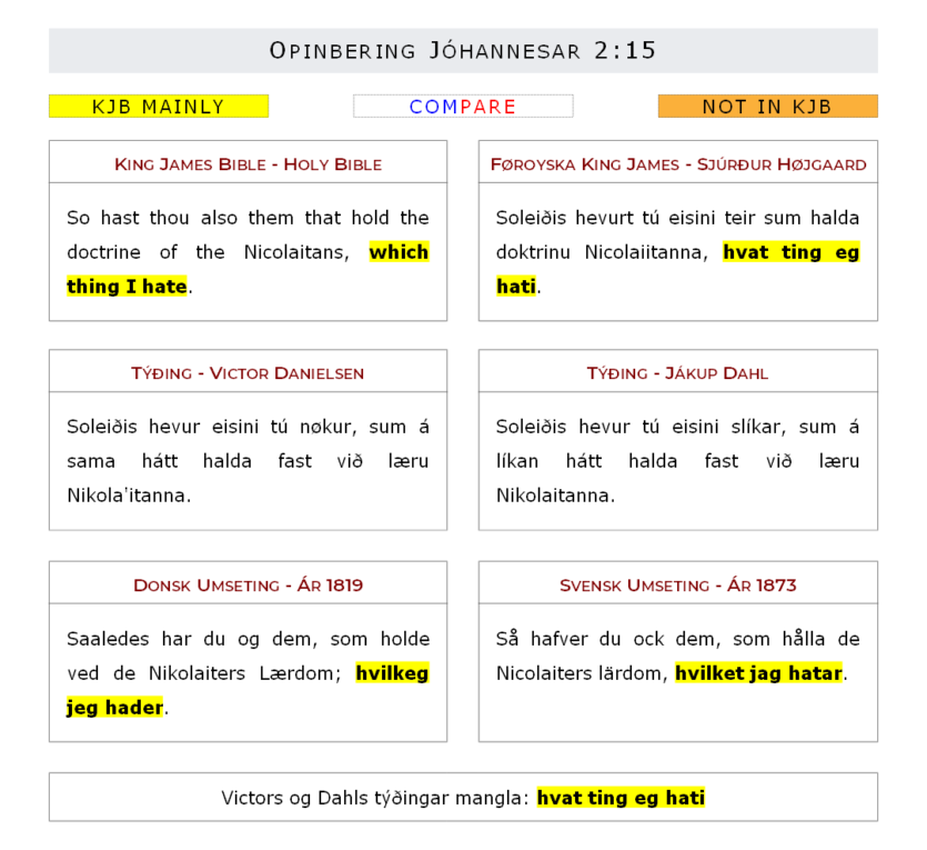FKJ Soleiðis hevurt tú eisini teir sum halda doktrinu Nicolaiitanna, hvat ting eg hati.