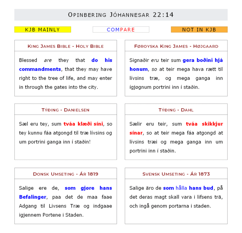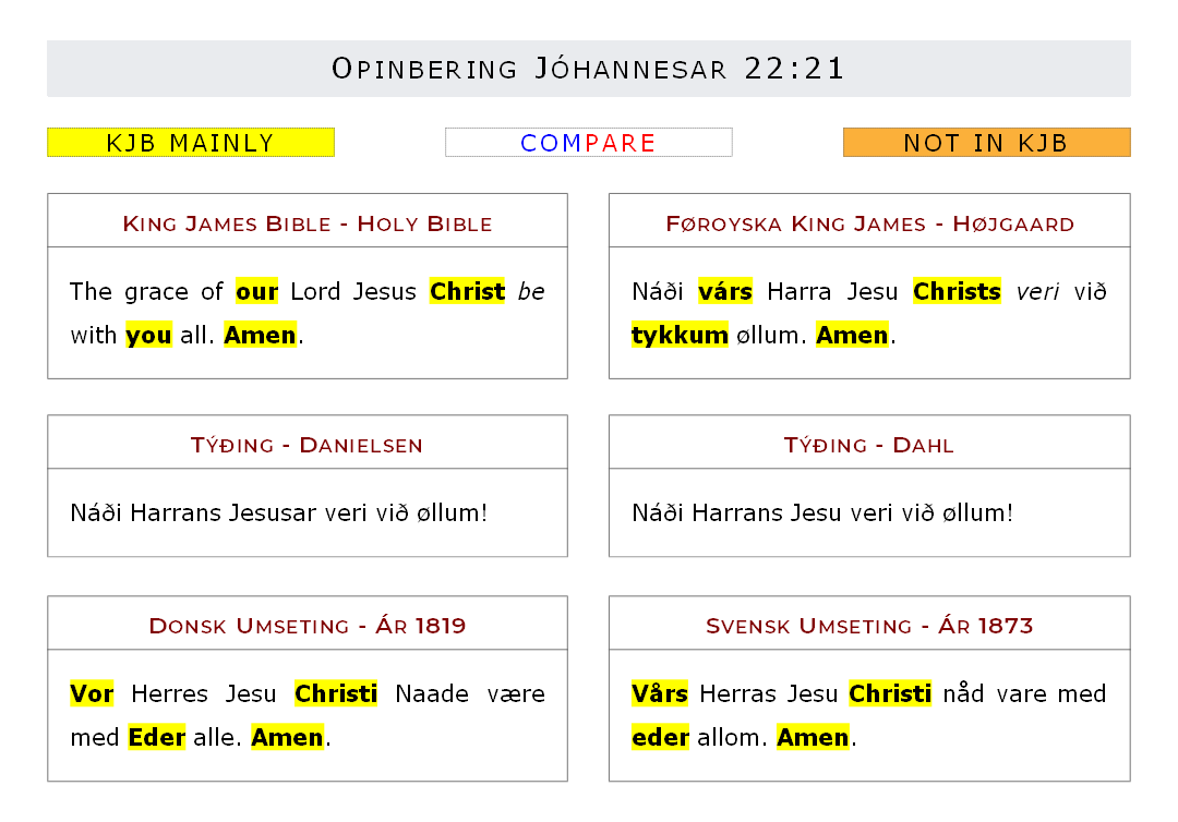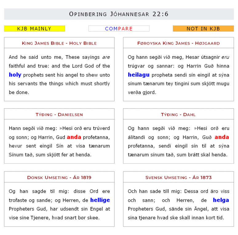 JD Og tekur nakar nakað burtur av orðunum í hesi profetadómsbók, tá skal Guð taka lut hansara burtur frá lívsins træi og frá hinum heilaga staði, sum skrivað er um í hesi bók.