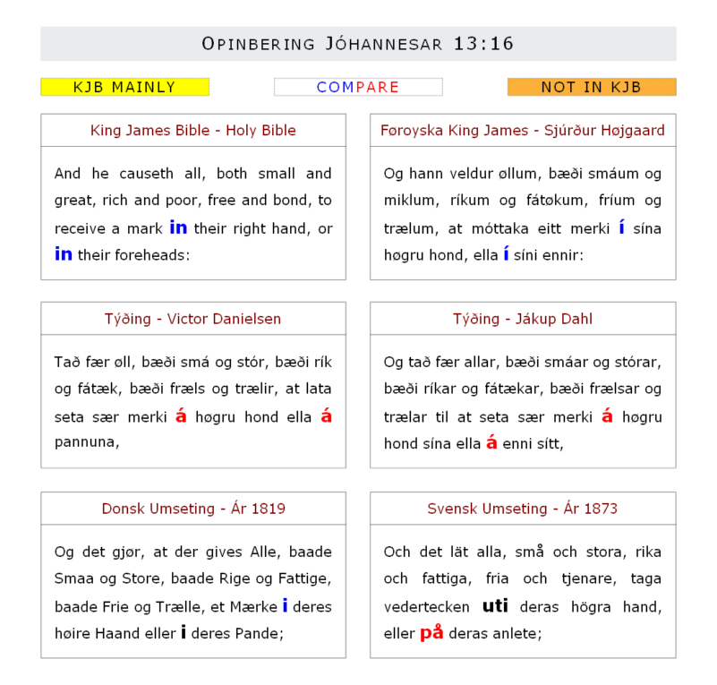 JD Og tað fær allar, bæði smáar og stórar, bæði ríkar og fátækar, bæði frælsar og trælar til at seta sær merki á høgru hond sína ella á enni sítt,