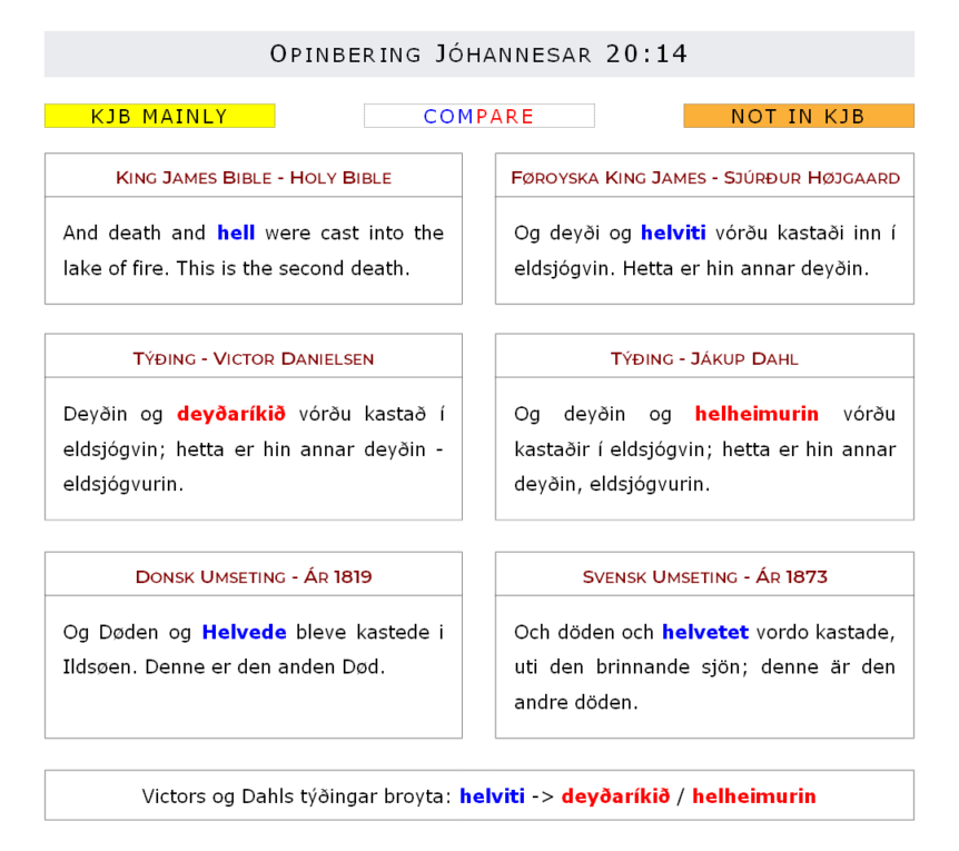 Victors og Dahls týðingar broyta: helviti -> deyðaríkið / helheimurin