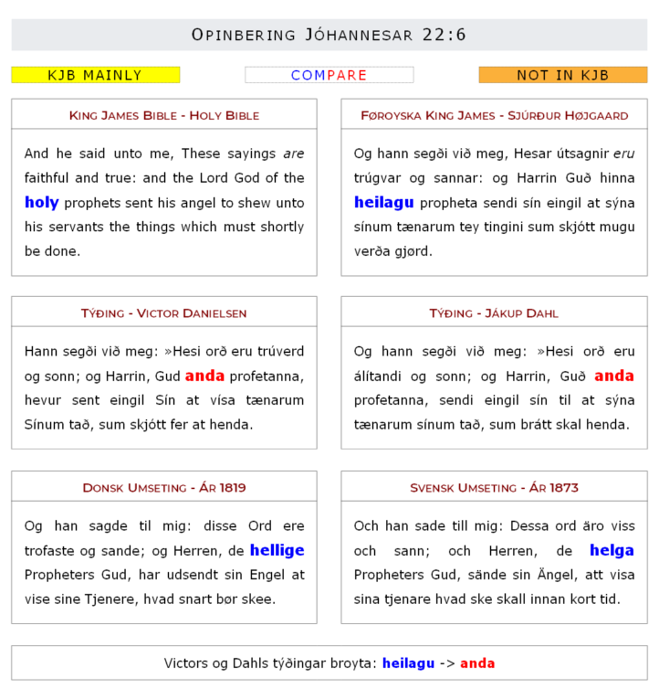 Victors og Dahls týðingar broyta: heilagu -> anda