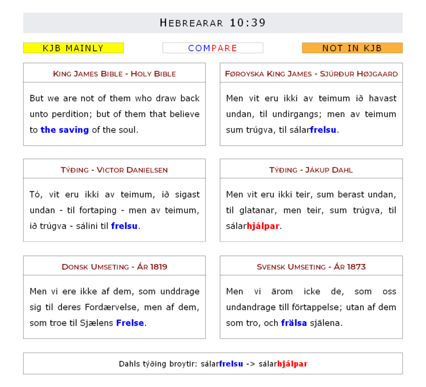 VD Tó, vit eru ikki av teimum, ið sigast undan – til fortaping – men av teimum, ið trúgva – sálini til frelsu.