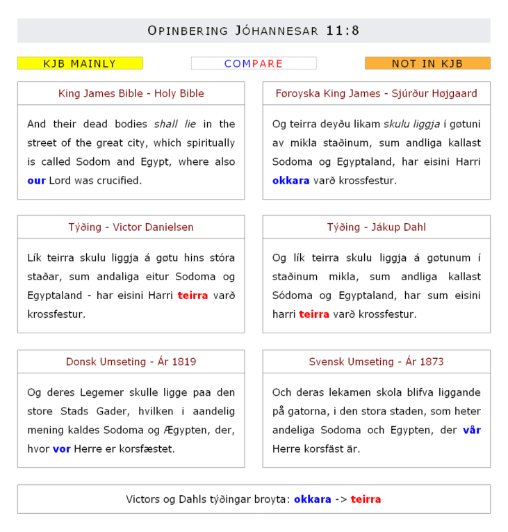 Victors og Dahls týðingar broyta: okkara -> teirra